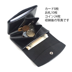 中央のコインスペースはコインの大きさにもよりますが25枚程度収納でき、大きく開くので、出し入れがとても楽。もちろんカード入れとして使用することも可能。